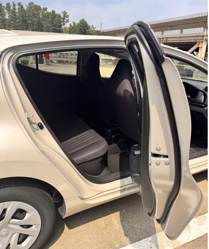 アクアは車高が低めなので、身長150cmの私でも前席はとても乗り降りしやすかったです。頭をかがめる必要もなく、乗り込みもスムーズでした。
